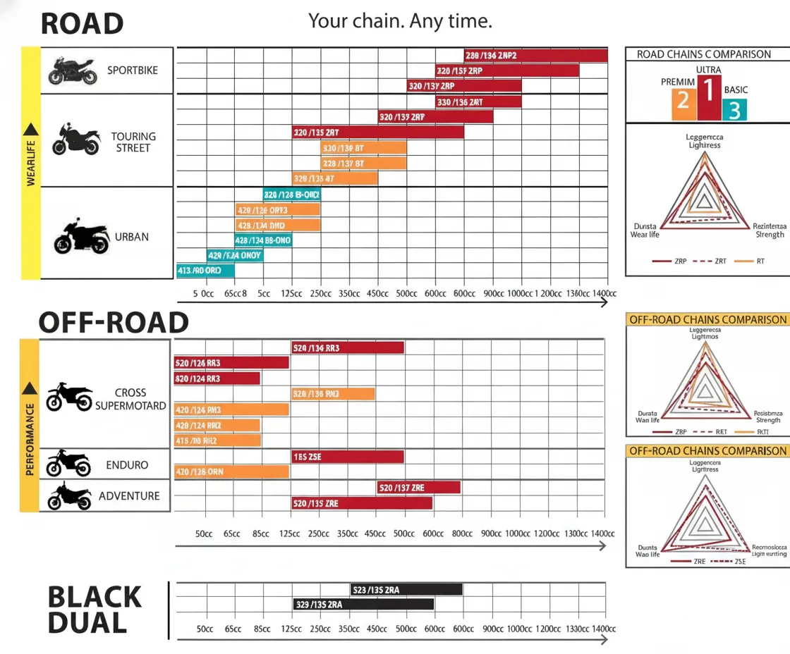 RT-Ketten: für Mittelklasse-Motorräder (125–500 cc).
