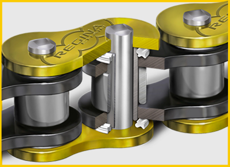 Regina-Ketten, seit 1939 aktiv, werden in MotoGP, Moto2, Moto3 und Superbike eingesetzt. Alle Straßenversionen verfügen über den patentierten Z Ring (2003), der sich beim Einbau nicht verformt und eine perfekte Abdichtung bietet.